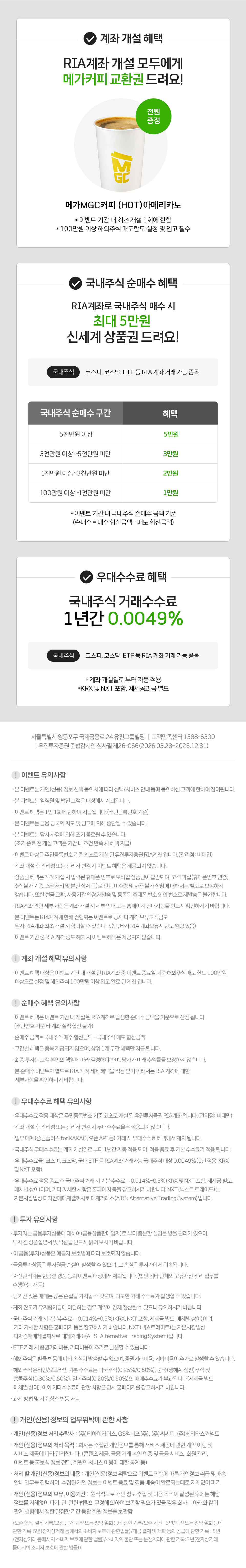 RIA계좌 개설 전원! 커피교환권+5만원 상품권!