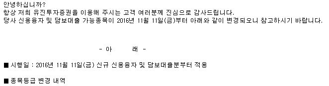 공지사항 신용융자 및 담보대출 대상종목 정기변경 안내 2016/11/10 영업추진팀 조회 164 목록보기 이전글 신규상장상품(섹터지수선물) 증거금률 결정내역 안내 다음글 [조기상환순연 안내] 제207회 주가연계파생결합증권(ELS)