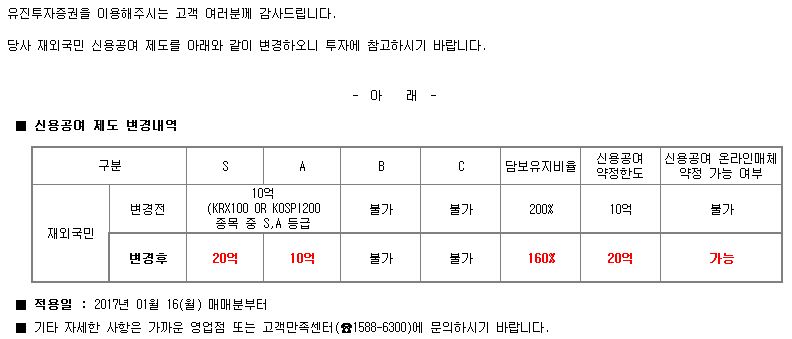 공지사항 재외국민 신용공여 제도 변경 안내 2017/01/16 영업추진팀 조회 171 목록보기 이전글 농협은행 전산시스템 재구축에 따른 금융거래 일시 중단 안내 다음글 국내MTS 주식주문 관련화면 단가입력시 호가등락률 제공 안내
