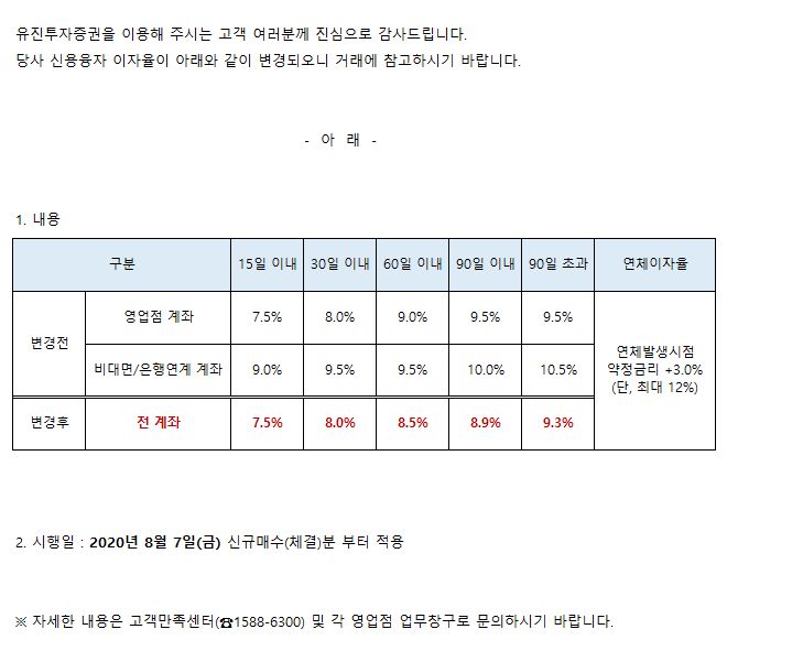 공지사항 신용융자 기간별 이자율 변경 안내 2020/07/16 WM추진팀 조회 836 목록보기 이전글 펀드매매 예약서비스 시행 안내 다음글 [수시공시] 한국투자마스터증권자투자신탁1호(국공채) 약관, 투자설명서, 간이투자설명서 변경