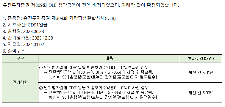공지사항 [DLB][배정 확정 안내] 유진투자증권 제309회 기타파생결합사채(DLB) 2023/06/23 FICC팀 조회 177 목록보기 이전글 [배정 및 기준지수 확정 안내] 제432회 주가연계파생결합증권(ELS) 다음글 [배정 및 기준지수 확정 안내] 제412회 주가연계파생결합사채(ELB)