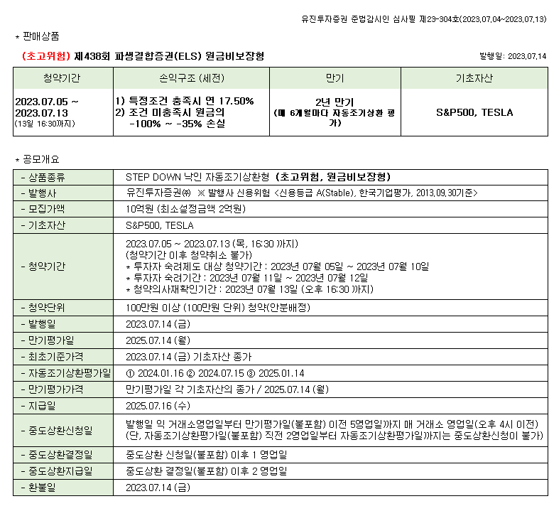 공지사항 [일정안내] 유진투자증권 제438회 주가연계파생결합증권(ELS) 2023/07/04 FICC팀 조회 175 목록보기 이전글 [소규모펀드공시] 당사판매 2023.06월 수시공시 대상 소규모 펀드리스트 다음글 신규상장종목 신규상장 당일 미수거래 제한 안내