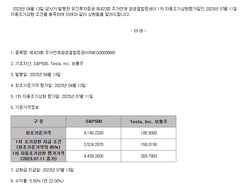 공지사항 [조기상환 안내] 제423회 주가연계파생결합증권(ELS) 2023/07/12 FICC팀 조회 150 목록보기 이전글 [만기상환 안내] 제369회 주가연계파생결합사채(ELB) 다음글 [일정안내] 유진투자증권 제439회 주가연계파생결합증권(ELS)