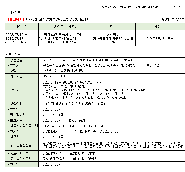공지사항 [일정안내] 유진투자증권 제440회 주가연계파생결합증권(ELS) 2023/07/18 FICC팀 조회 180 목록보기 이전글 [일정 안내] 유진투자증권 제423회 주가연계파생결합사채(ELB) 다음글 [배정 및 기준지수 확정 안내] 제422회 주가연계파생결합사채(ELB)