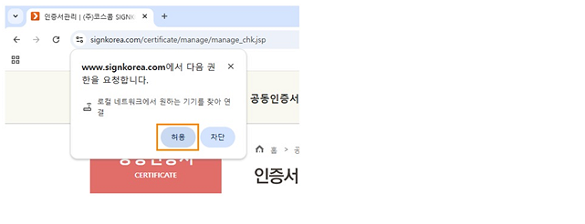 - 원활한 서비스 이용을 위해Chrome/Edge 업데이트 이후 접속 시 로컬 네트워크 권한 요청 창이 나타날 경우 [허용]을 선택해 주시기 바랍니다.
