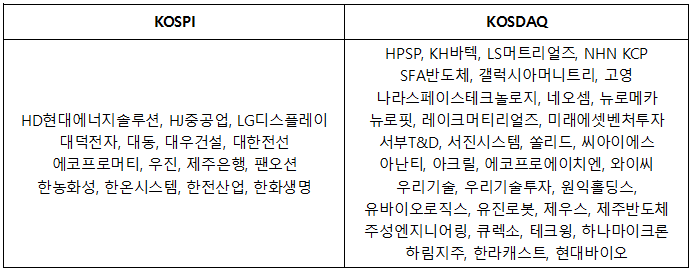 ■ 대상 종목 : HD현대에너지솔루션 등 50개 종목 (코스피 15종목, 코스닥 35종목) 제외